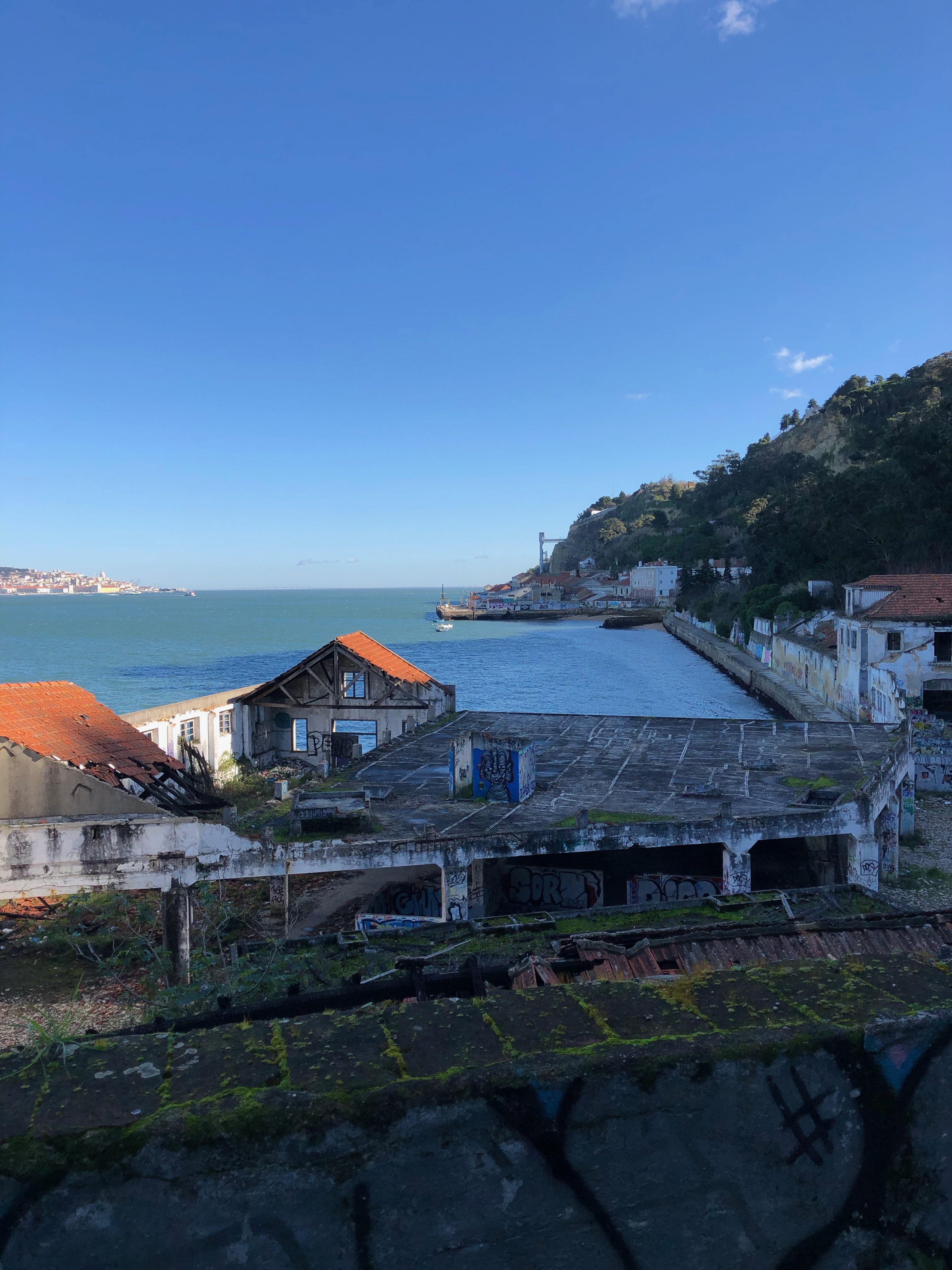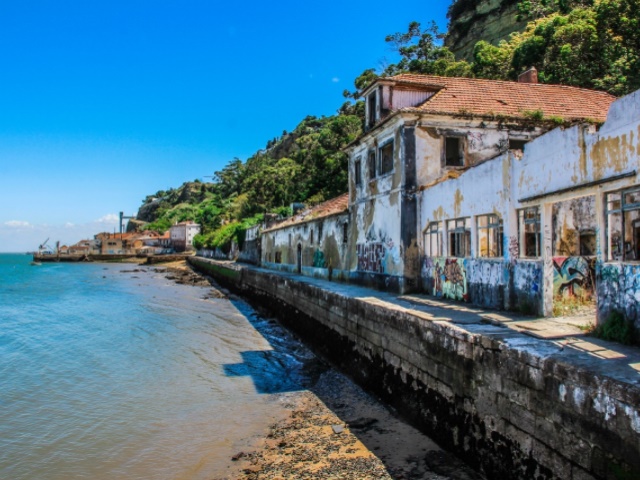 For Sale, Almada, under Cristo Rei: Unique property bordering the Tagus River, 17,000 m² abandoned winery in beautiful 8 hectares with stunning Lisbon views and direct access to the water