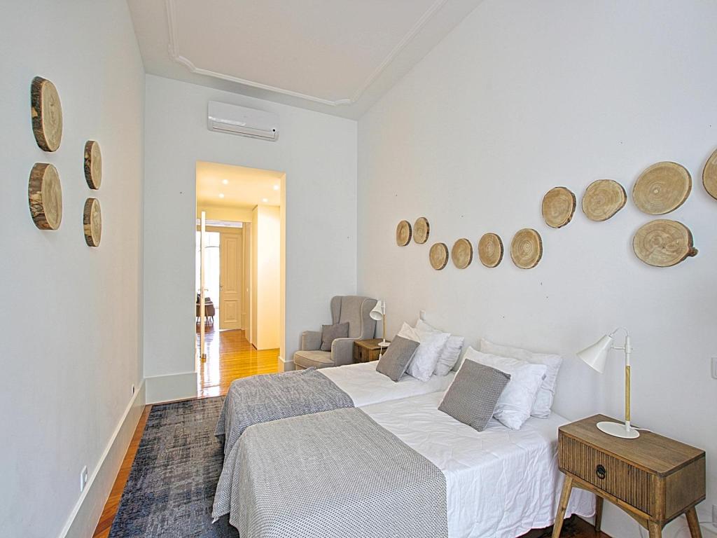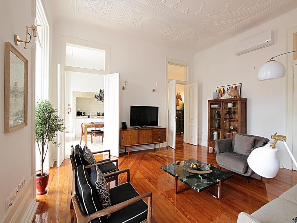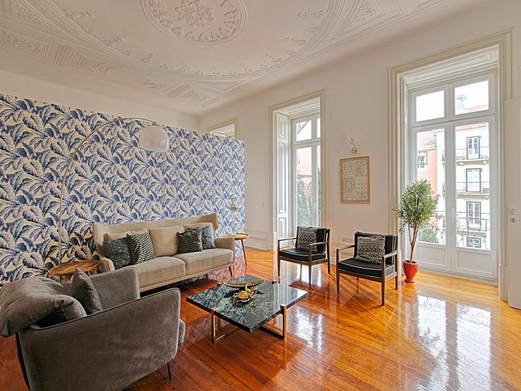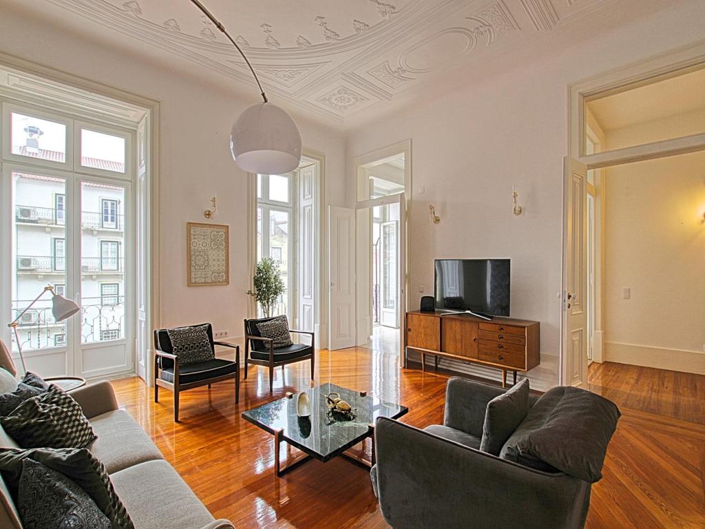 Rented, Chiado: Luminous Grand Apartment in 18th century building, 190 m², 2 bedroom, 3 bathrooms, high ceilings, balcony