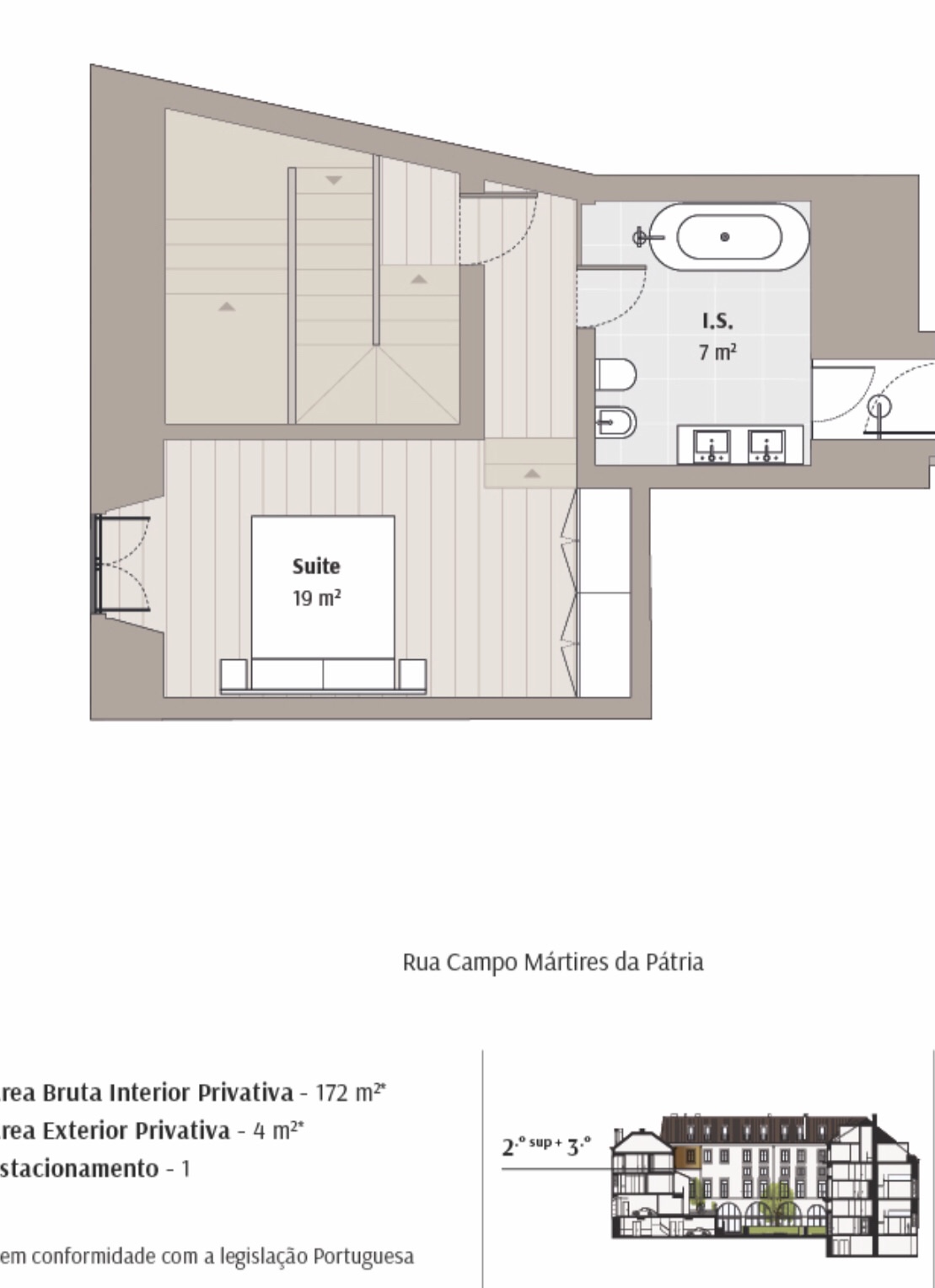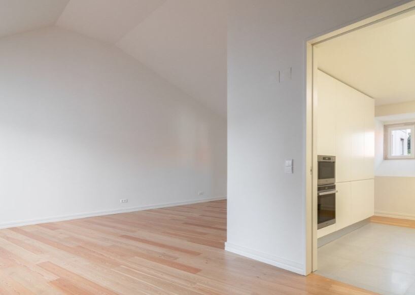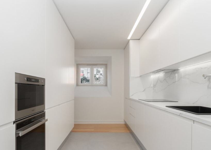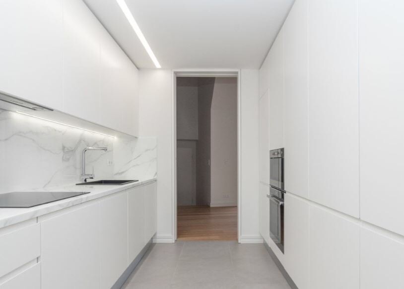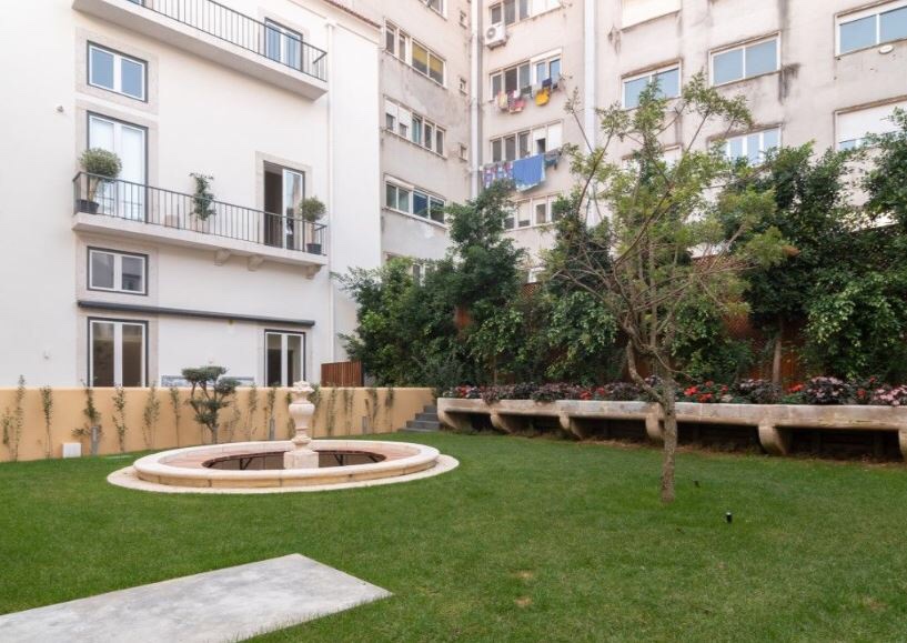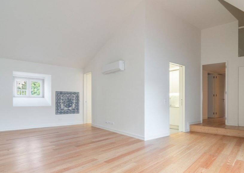 For Sale, Mártires da Patria: Minimalist white cube duplex, 160 m², 3 bedrooms, 3 bathrooms overlooking a private garden, 1 car garage
