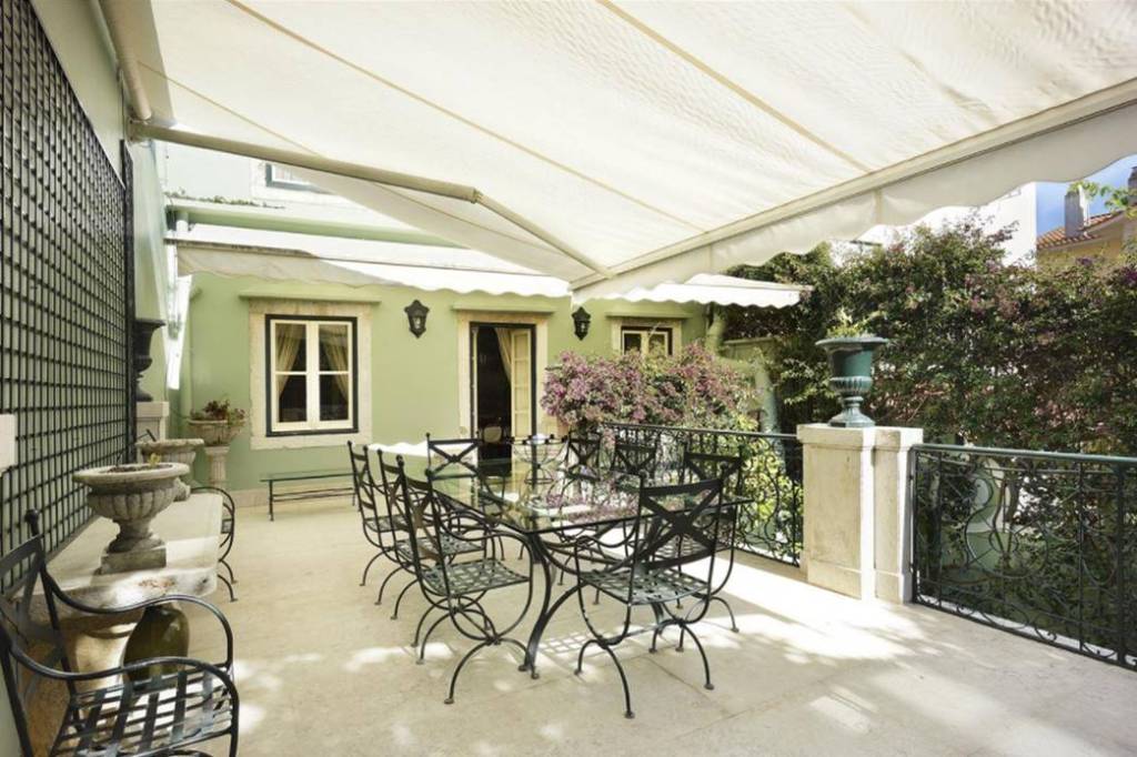 For Sale, Lapa: Elegant Historical Family House with garden and views, 430 m², on five floors (with elevator) 5 bedrooms, 6 bathrooms, 175 m² outside space including large terrace with River views and garden – parking space available for rent next to the house