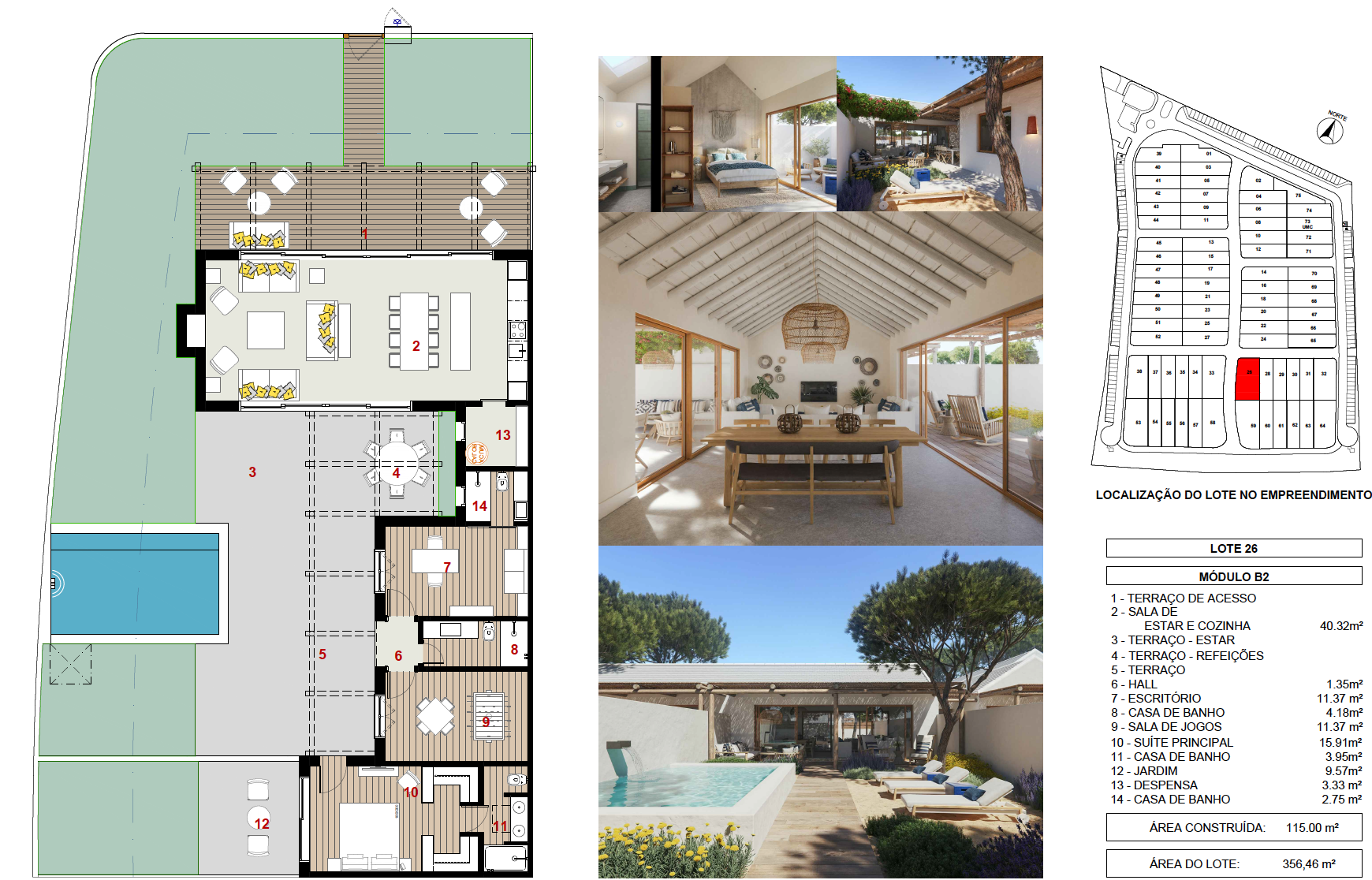 For Sale, Comporta: Great Investment Opportunity, Pestana Comporta Bungalows, 115 m², 2 bedrooms, 2 bathrooms, private patio and swimming pool in 356 m² plot