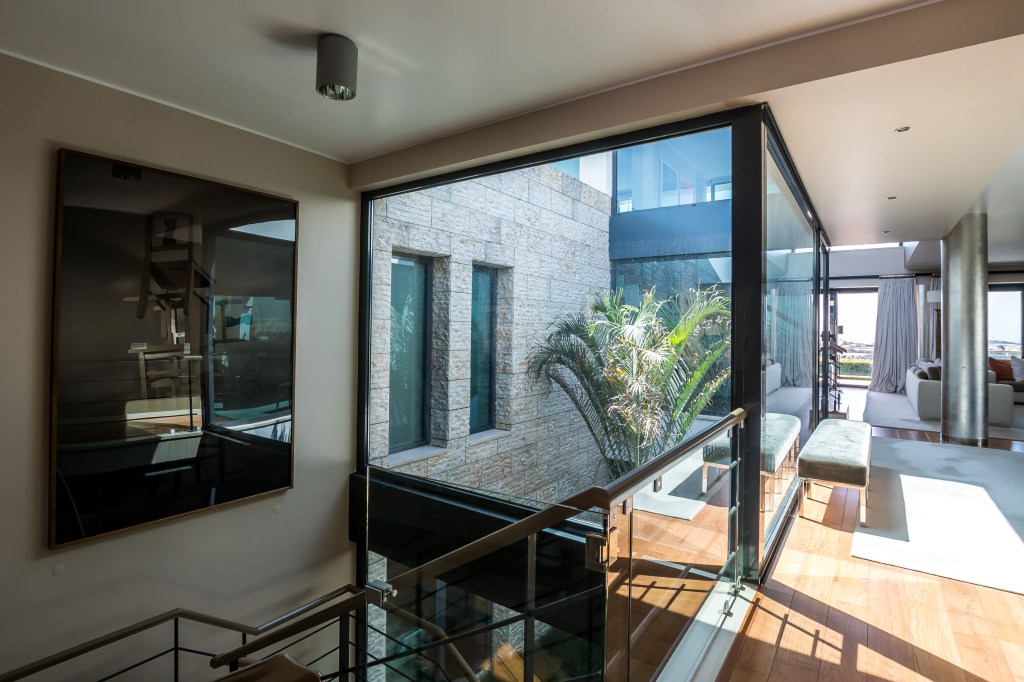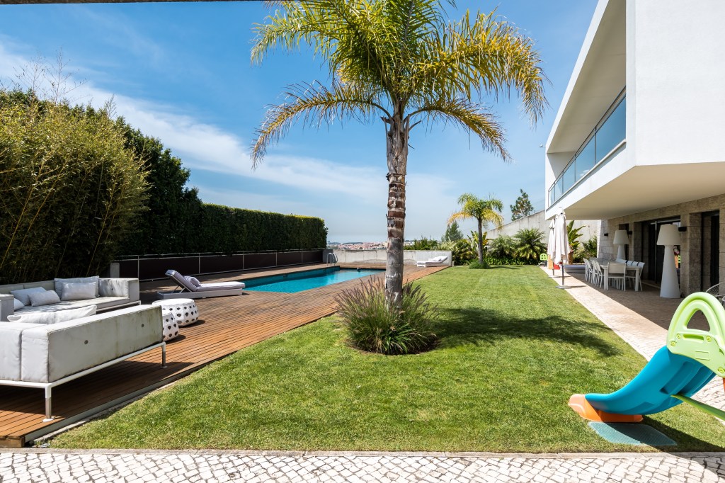 For Sale, Oeiras: Classic Contemporary Comfort, 560 m² Villa with Sea view, three floors, various reception and play areas, 7 bedrooms, 7 bathrooms in 2000 m² land plot, heated pool, organic Orchard and 4 car and motorcycle garage