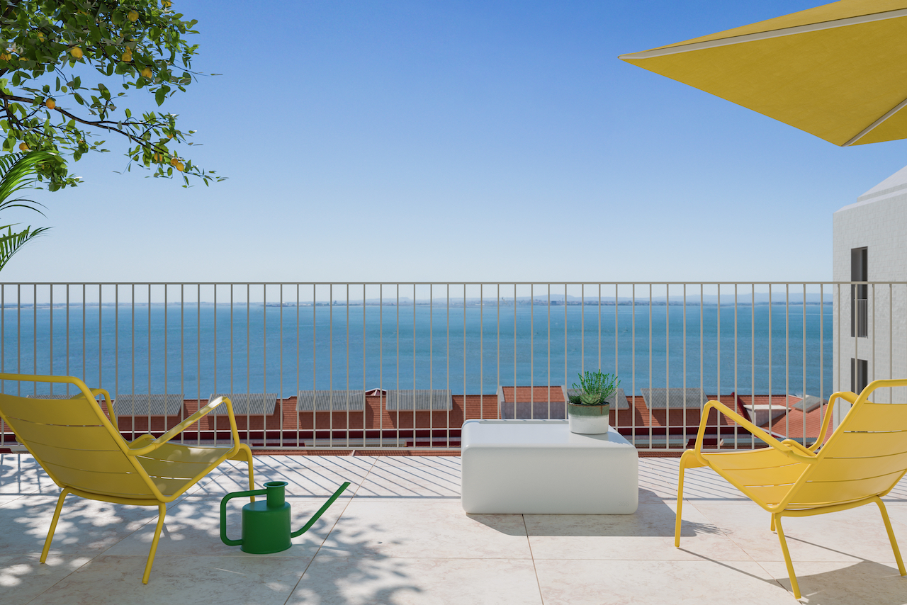 For Sale, Alfama: “A Touch of Blue”: The Standard Residences, Fabulous Renovation of River Front Historical Buildings, manifesting your inner David Hockney at Palacio Santa Clara. 32 Apartments available from 2 bedrooms to 4 bedrooms, Magnificent Views with State-of-Art Hotel Amenities