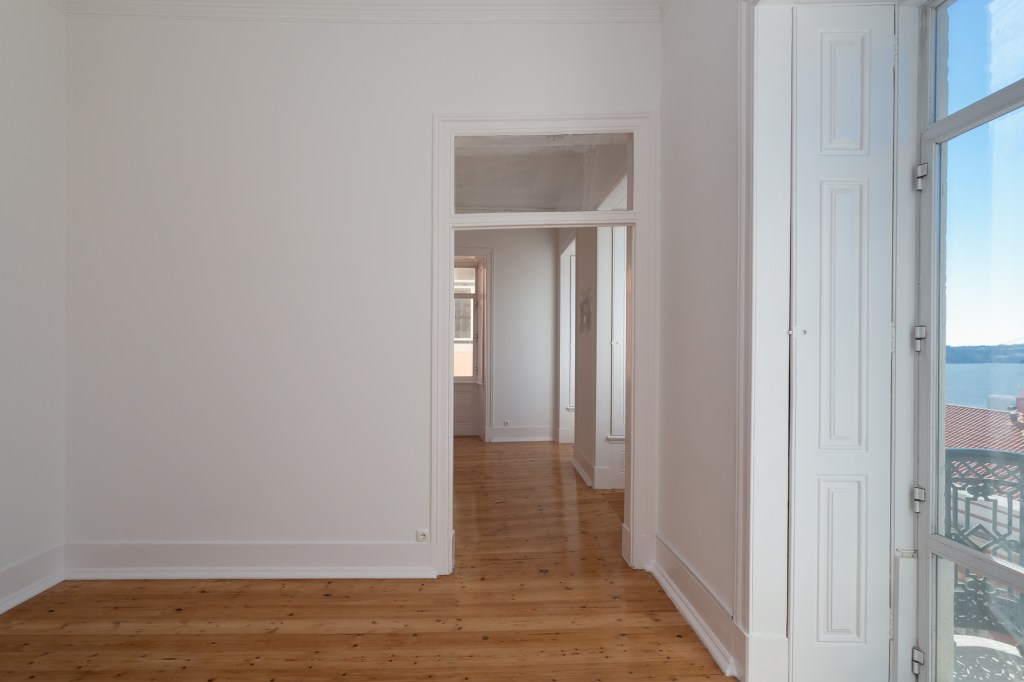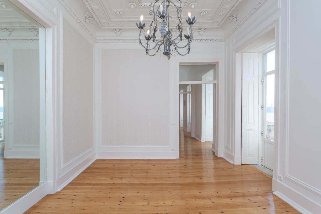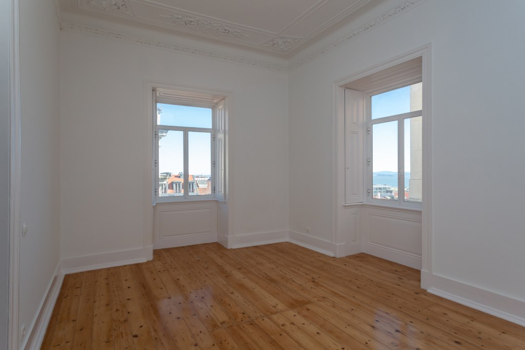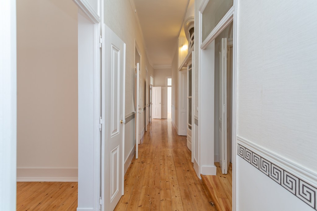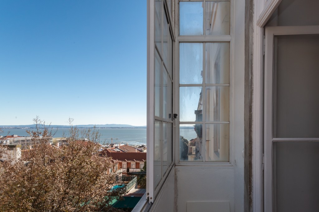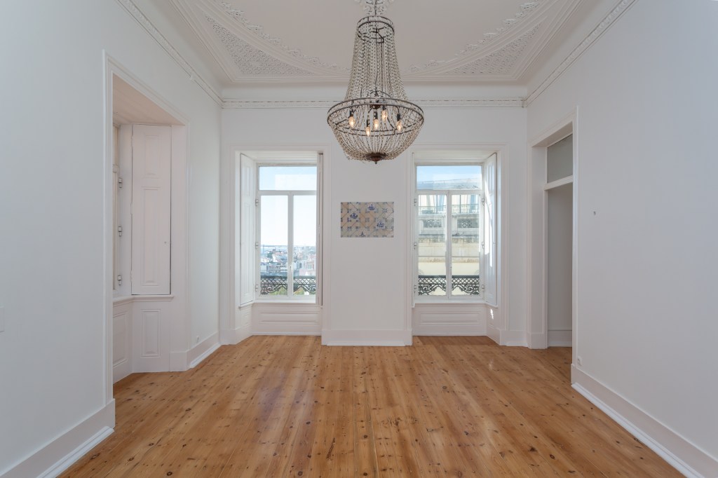 Reserved, Chiado: “La Belle Endormie”, 194 m², 3 living rooms, 3 bedrooms, 2 bathrooms, ornamented 4 meter ceilings, veranda with river view, all in need of TLC. Storage, Elevator, Garage rental nearby.