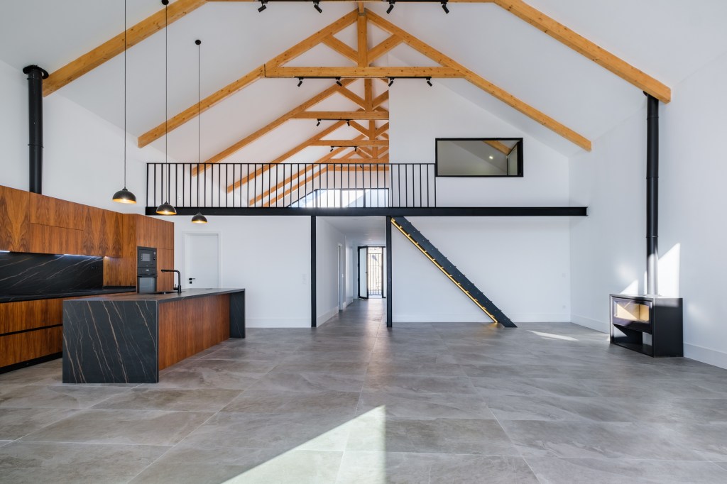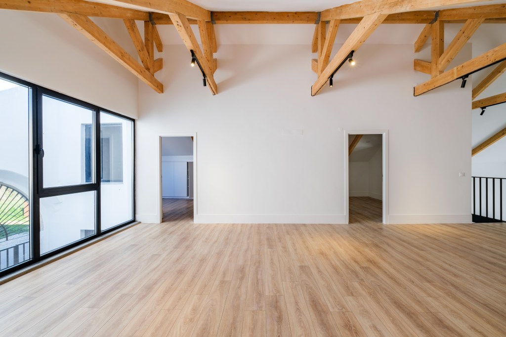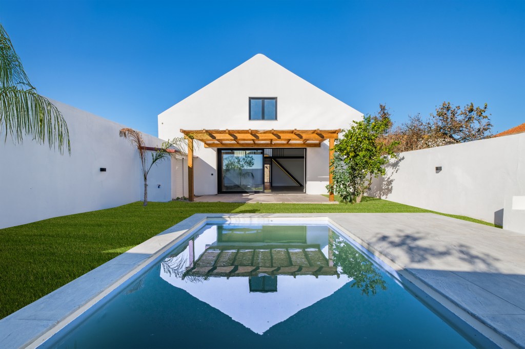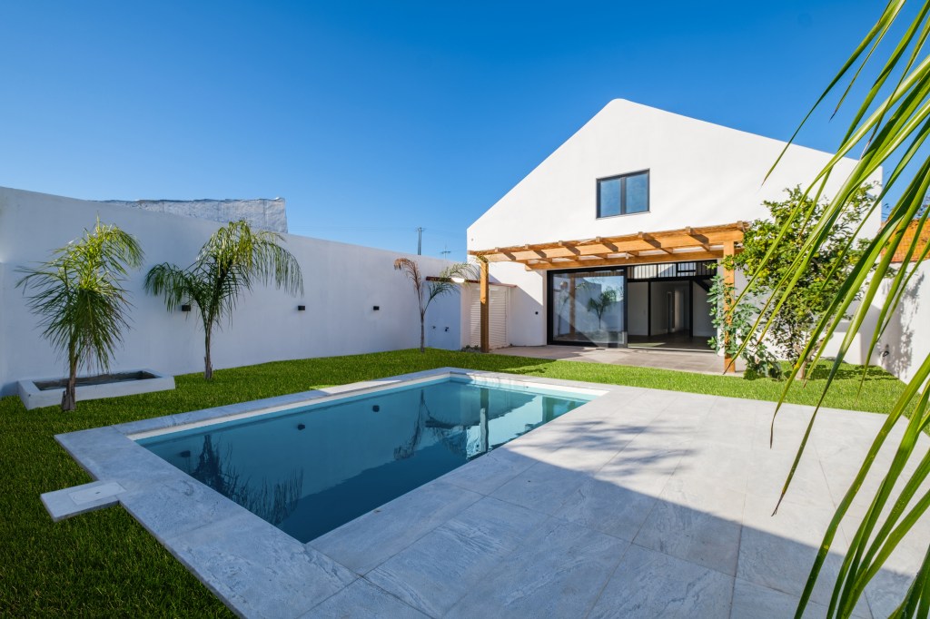 For Sale, Montijo, (Sarilhos Grandes), Impeccable Loft: Brand New Little Haven, 336m2, Large entertaining areas, High Ceiling (6,80m.), 3 bedrooms with 3 en-suite bathrooms + Guest lavatory. 123m2 Garden/Patio with Pool. 20 minutes from Lisbon next to the Tagus estuary.