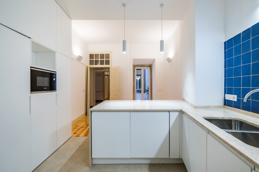 Rental, Sé, Charming Pied-à-Terre: Renovated 160m2 high ceiling apartment, 2 bedroom, 2 bathrooms, and extra rooms to entertain, work or store + small patio. First floor without elevator