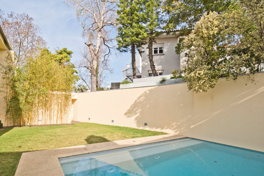 Sold, Restelo: Chic Modern Design Villa, Elegant large family house in quiet residential haven with wonderful views, 400 m², 4 bedrooms, 5 bathrooms, 4 car garage, 300 m² garden, swimming pool